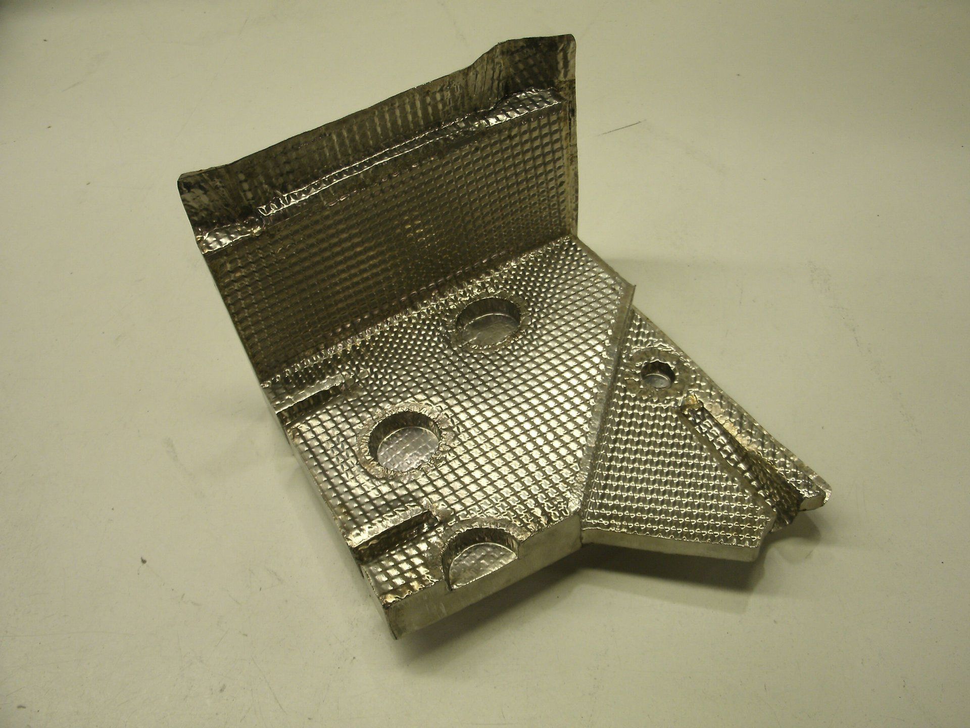 The construction of a typical heat shield consists of the insulation material being sandwiched between two metallic skins which are subsequently welded together to seal the insulation material in place.